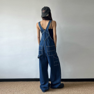 休闲减龄阔腿裤 男女高级感宽松工装 子 复古牛仔背带裤 无无厘头美式