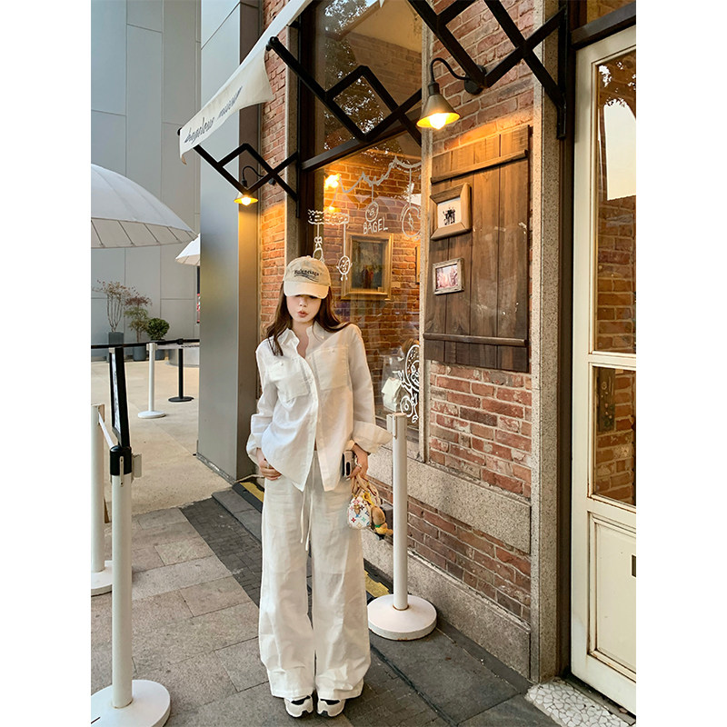 REAL 女慵懒直筒阔腿长裤 南法轻氧 套装 松弛感棉麻衬衫 CHANGING