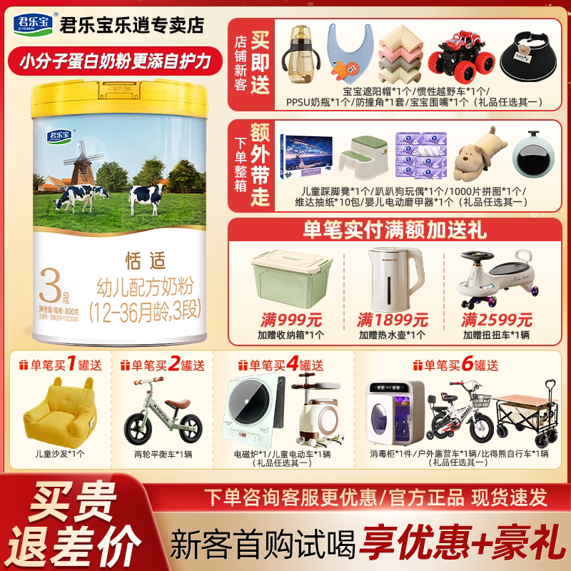 君乐宝恬适奶粉3段婴幼儿配方奶粉12 1罐 36个月800g