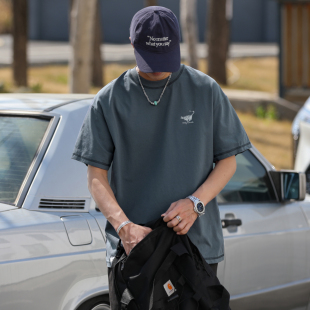 250g嘿马七作索罗娜UPF50 T恤男速干 日系复古凉感夏圆领印花短袖