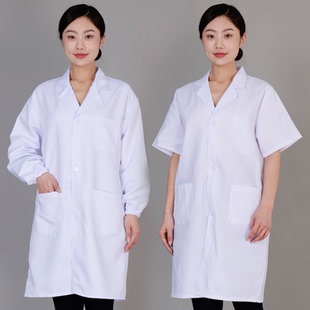 车间实验服白大褂长短袖 食品厂大褂防护实验服药店工作服 食堂长款