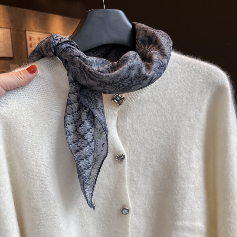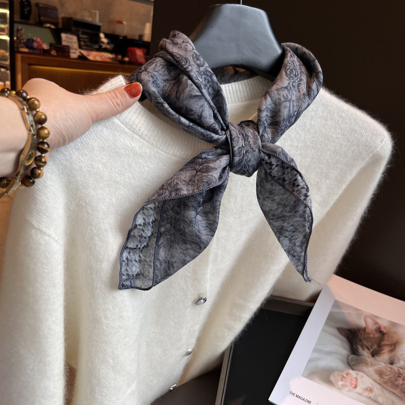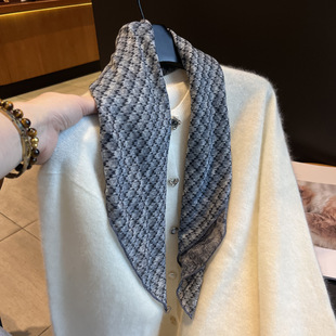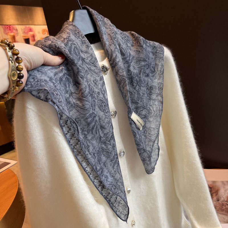 高级格雷灰双面玫瑰花千鸟格纯棉围巾小方巾百搭包头巾三角巾丝巾