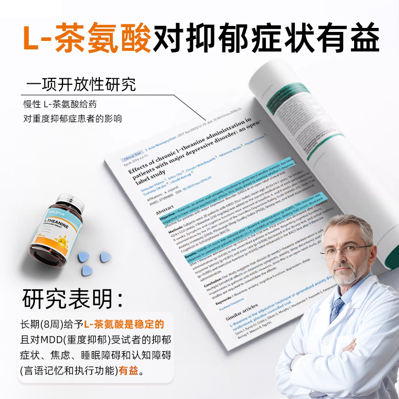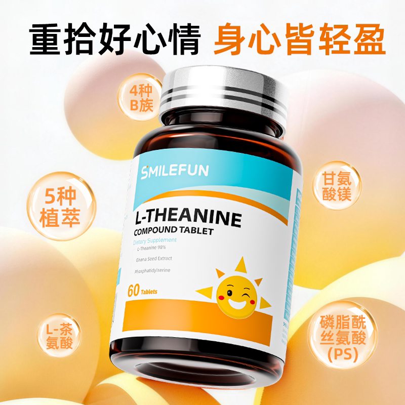 Smilefun米乐芙茶氨酸片小悦宝助眠舒压缓解情绪稳定调理重启快乐