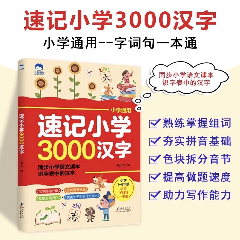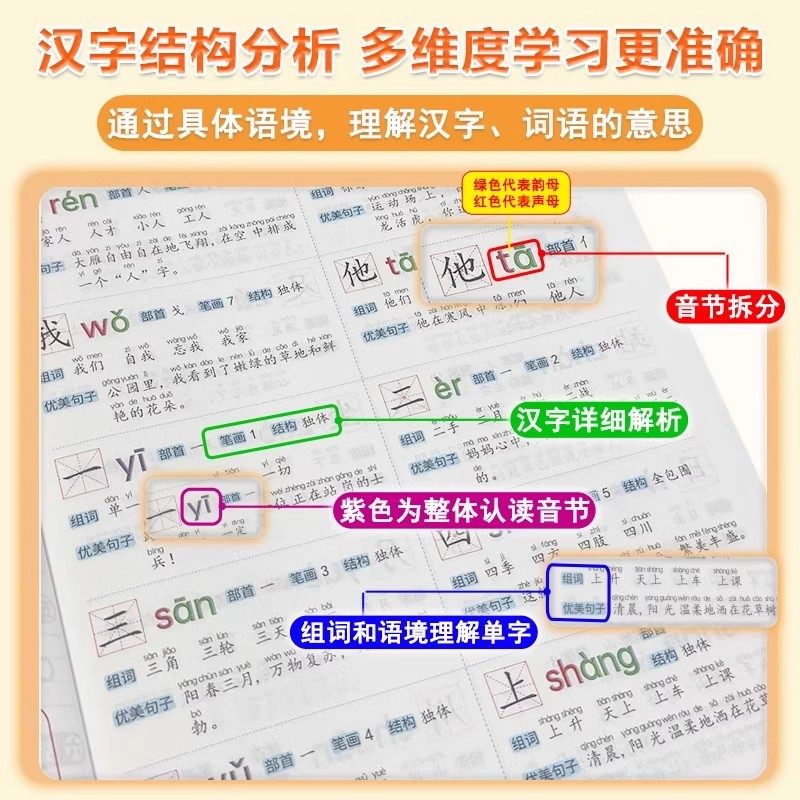 速记小学3000汉字1到6年级语文课本同步人教版 认识偏旁部首结构幼儿园启蒙认字组词造句一本通儿童学字认字识字神器汉字速写识字书