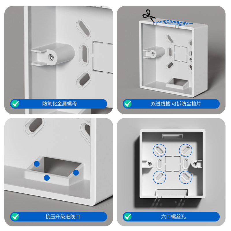 86加高底盒开关插座加厚PVC明装 接线盒插座底盒下线盒明盒布线盒