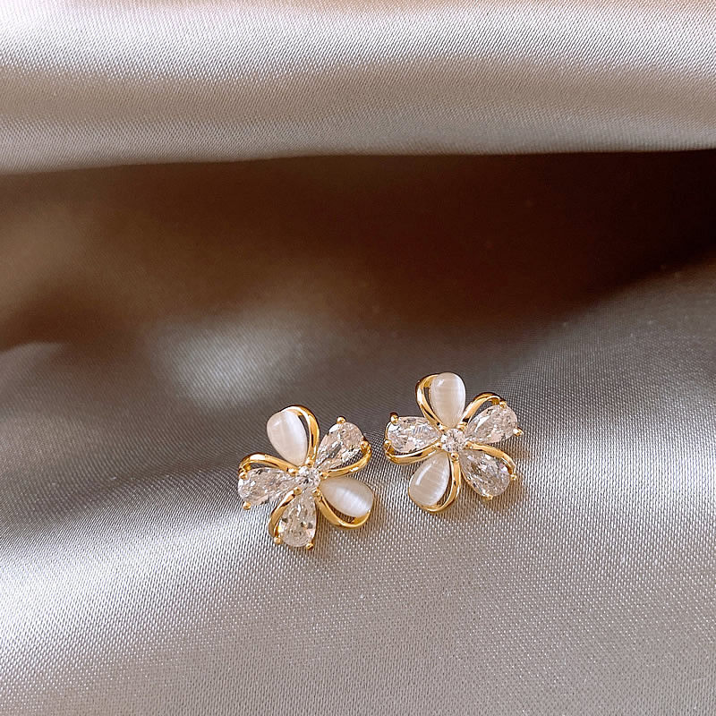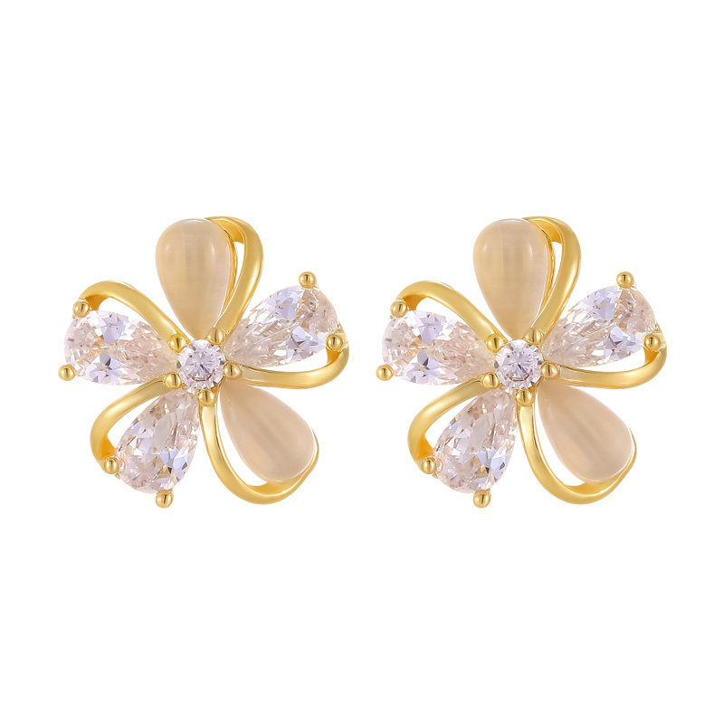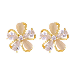 S999纯银玫瑰金耳钉女纯银小众耳夹高级感耳饰2025新款 猫眼石耳环