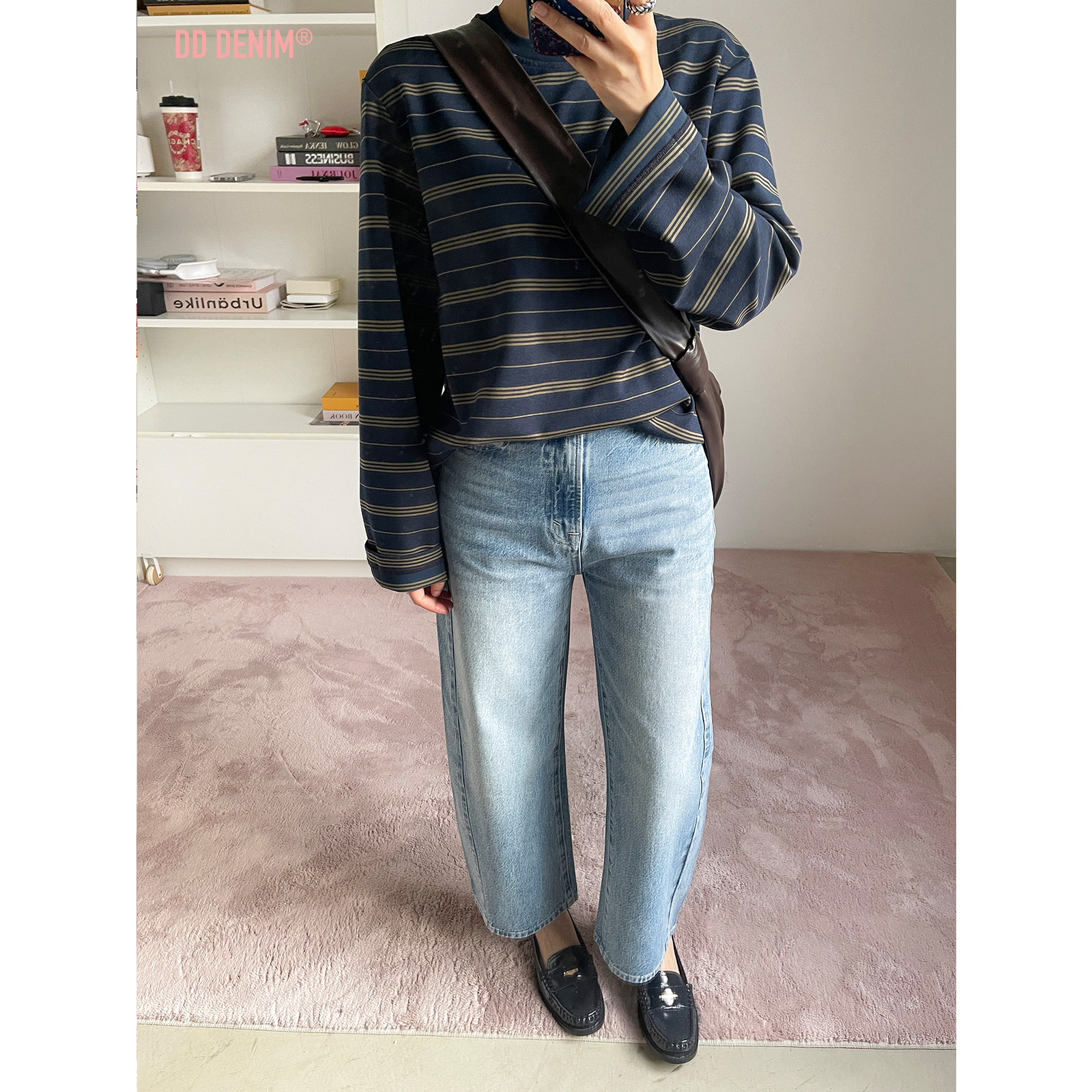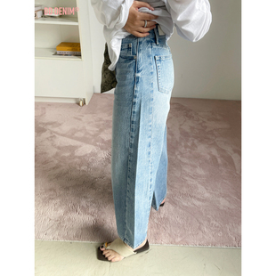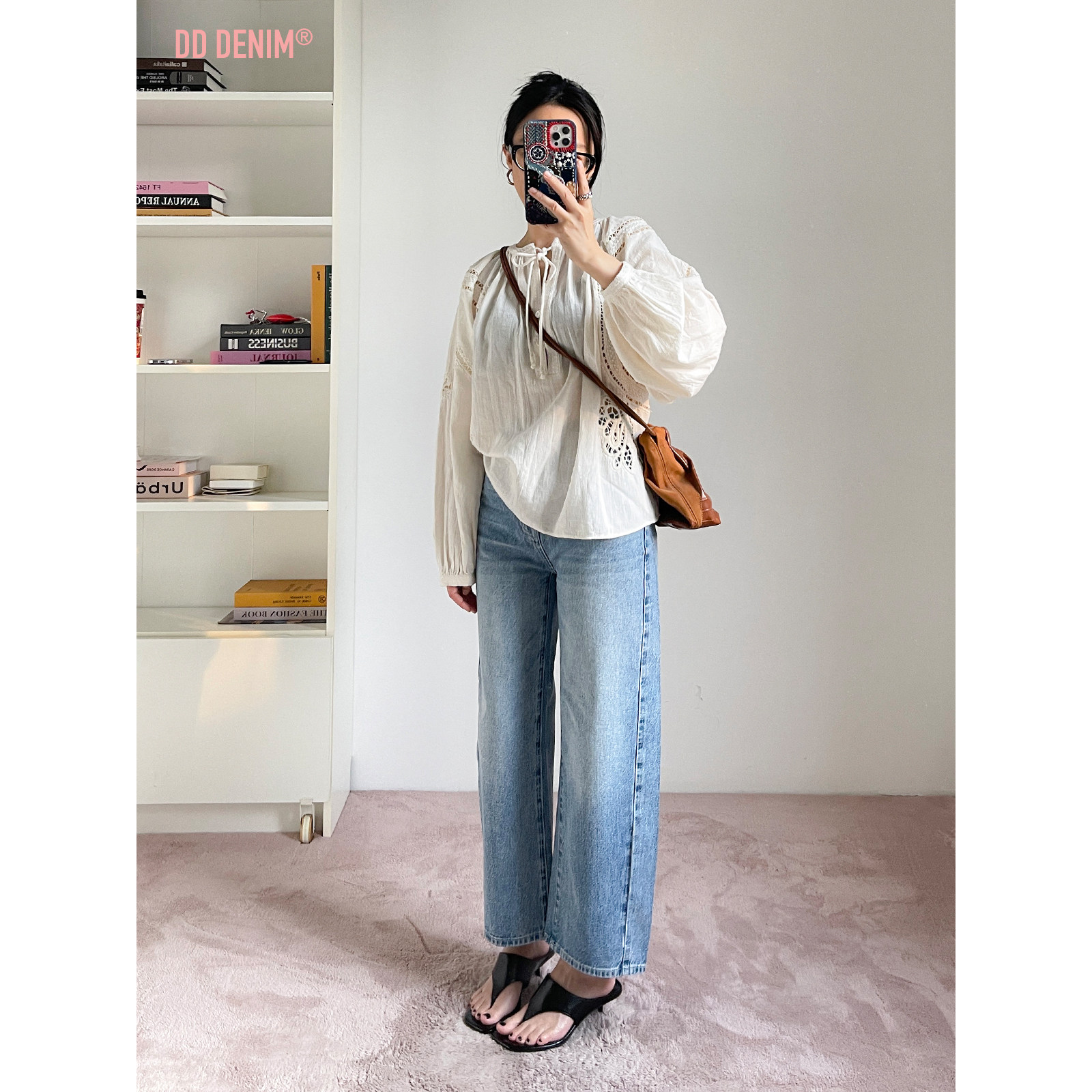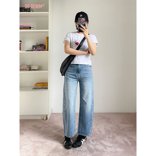 女九分阔腿裤 DD「Daily Chill」拼接扭缝设计春夏高腰弯刀牛仔裤