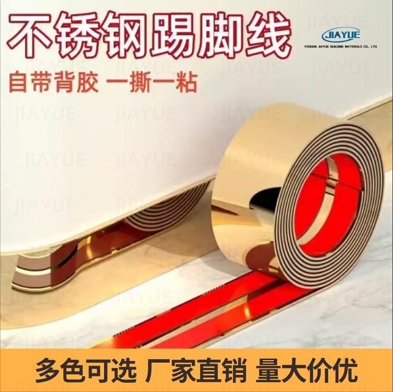 背景墙踢脚线不锈钢平板装 饰线条吊顶包边条收边条黑钛自粘黑钛金