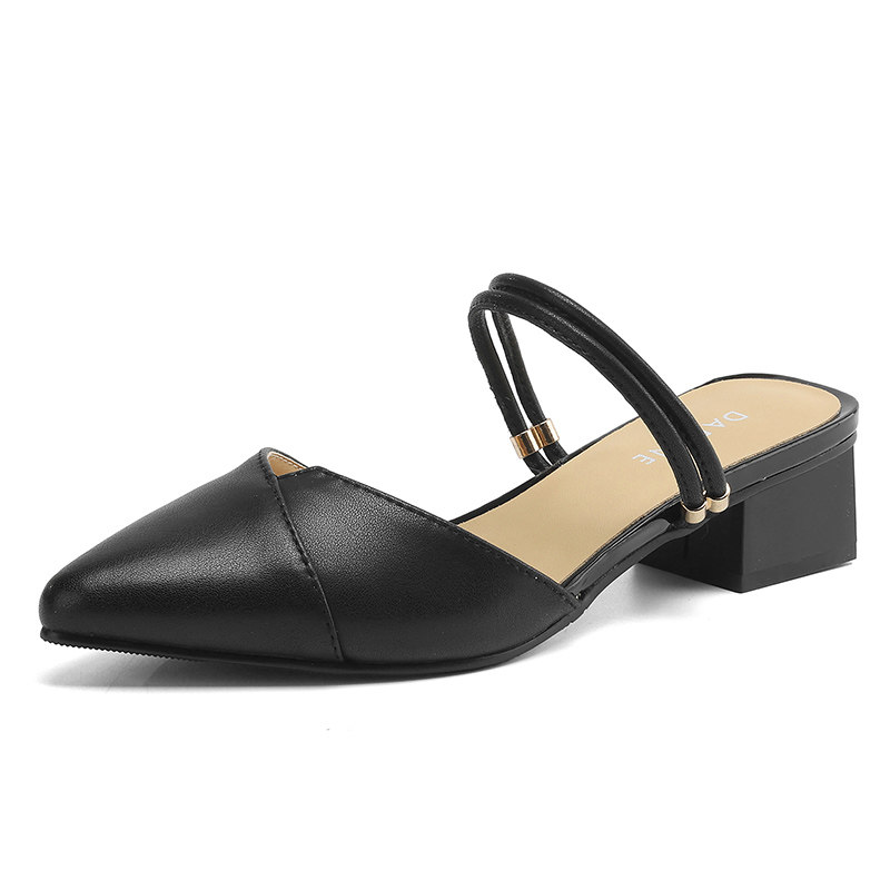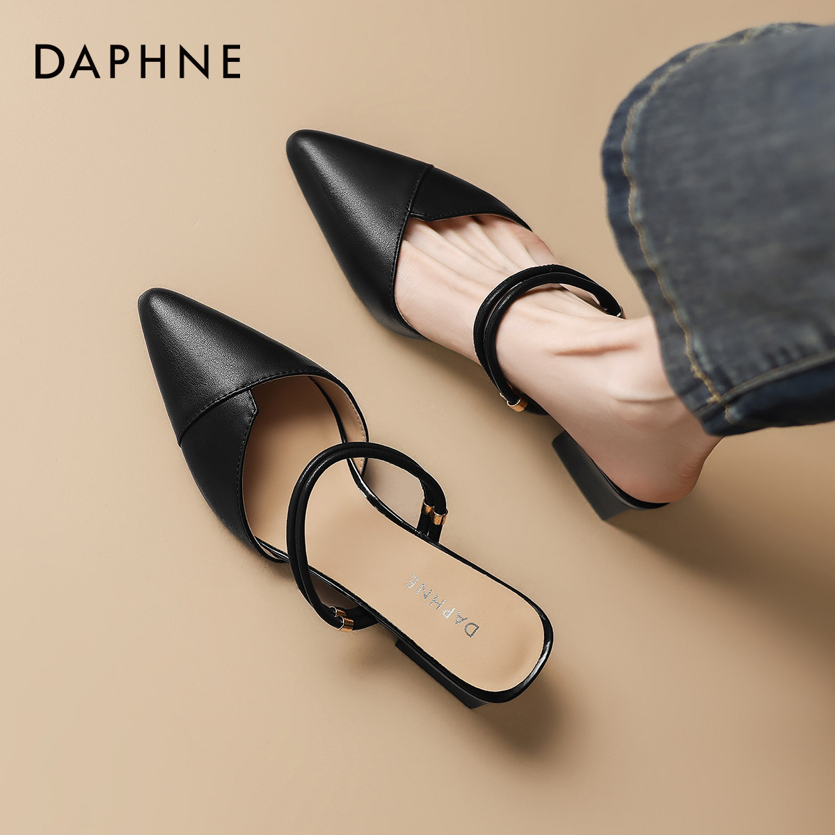 小凉拖粗高跟鞋 达芙妮尖头包头拖鞋 外穿黑色法式 2026新款 子 女夏季