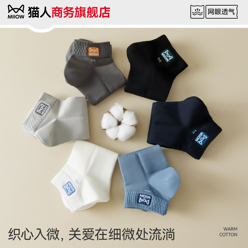 款 猫人袜子男士 纯棉防臭吸汗抗菌全棉男式 薄款 透气运动袜 短袜夏季
