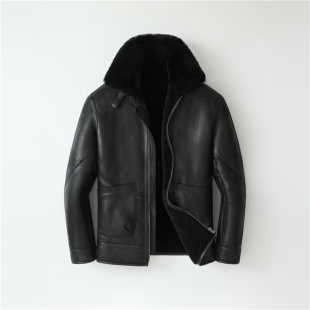 绵羊皮真皮皮衣男款 休闲外套原生态皮毛一体皮夹克保暖加厚冬季