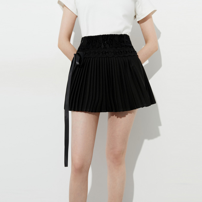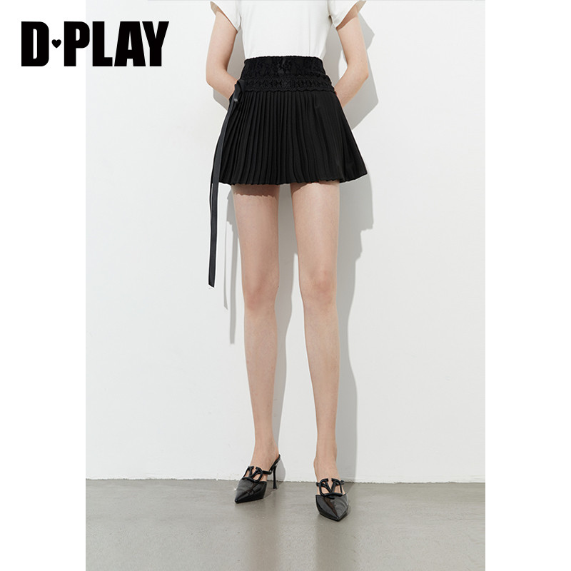 新款 2025年夏季 黑色半身裙女蕾丝裙子百褶裙短裙 惠品 DPLAY