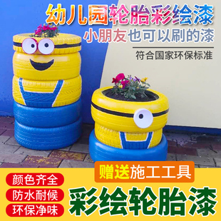 轮胎彩绘漆花盆涂鸦颜料外墙乳胶漆墙绘漆彩绘颜料墙面漆地面彩绘