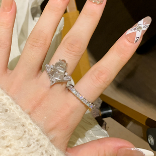 一眼沦陷 超闪满钻戒指女轻奢高级感尾戒素圈戒指女小众设计指环