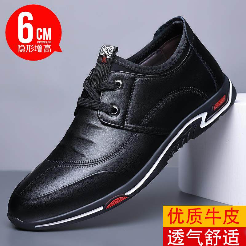 潮内凉鞋 男鞋 运动务休 隐形增高6cm真皮商休闲男皮鞋 高档春夏男士
