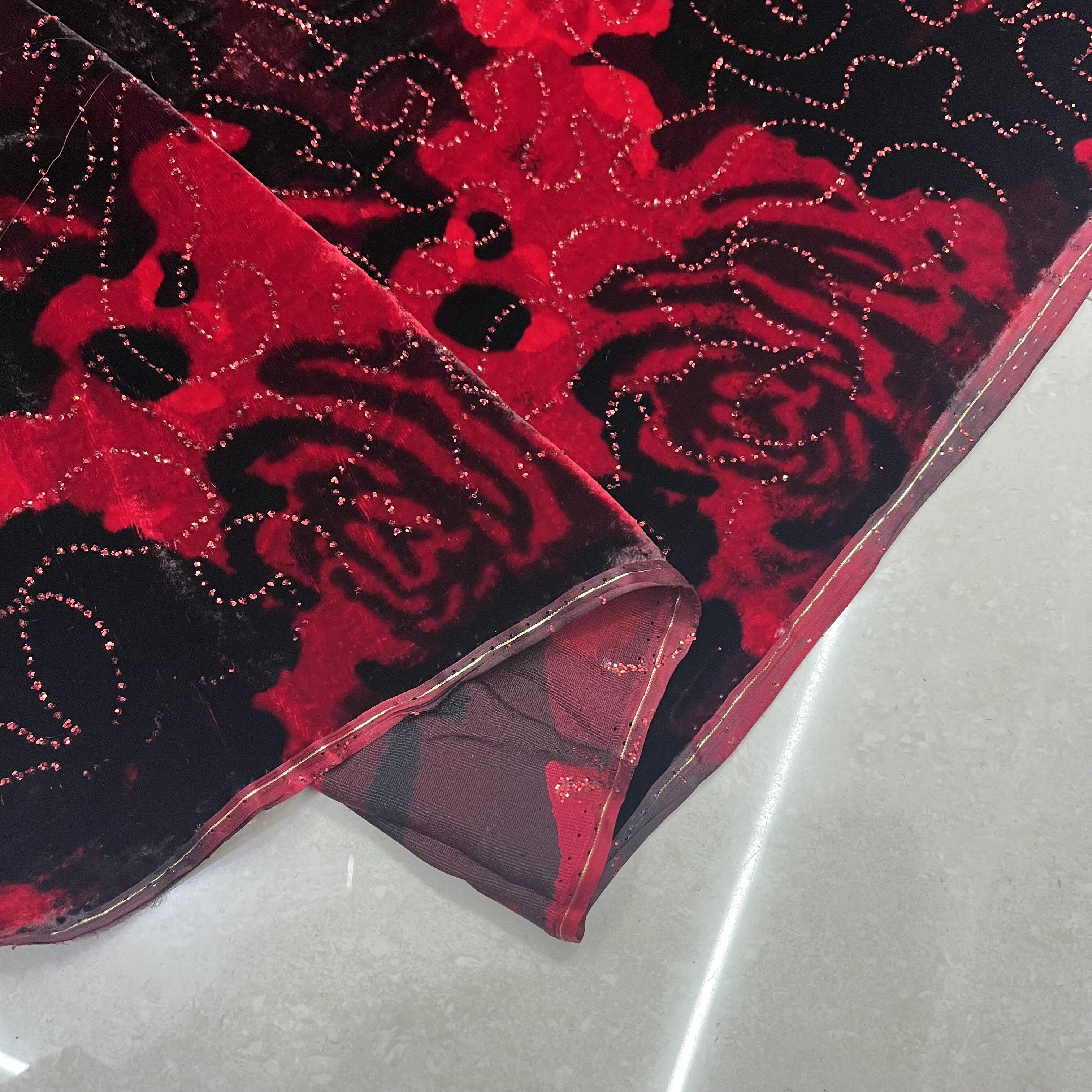 黑色底真丝丝绒烫金布料底布桑蚕丝金丝绒旗袍连衣裙礼服服装 面料