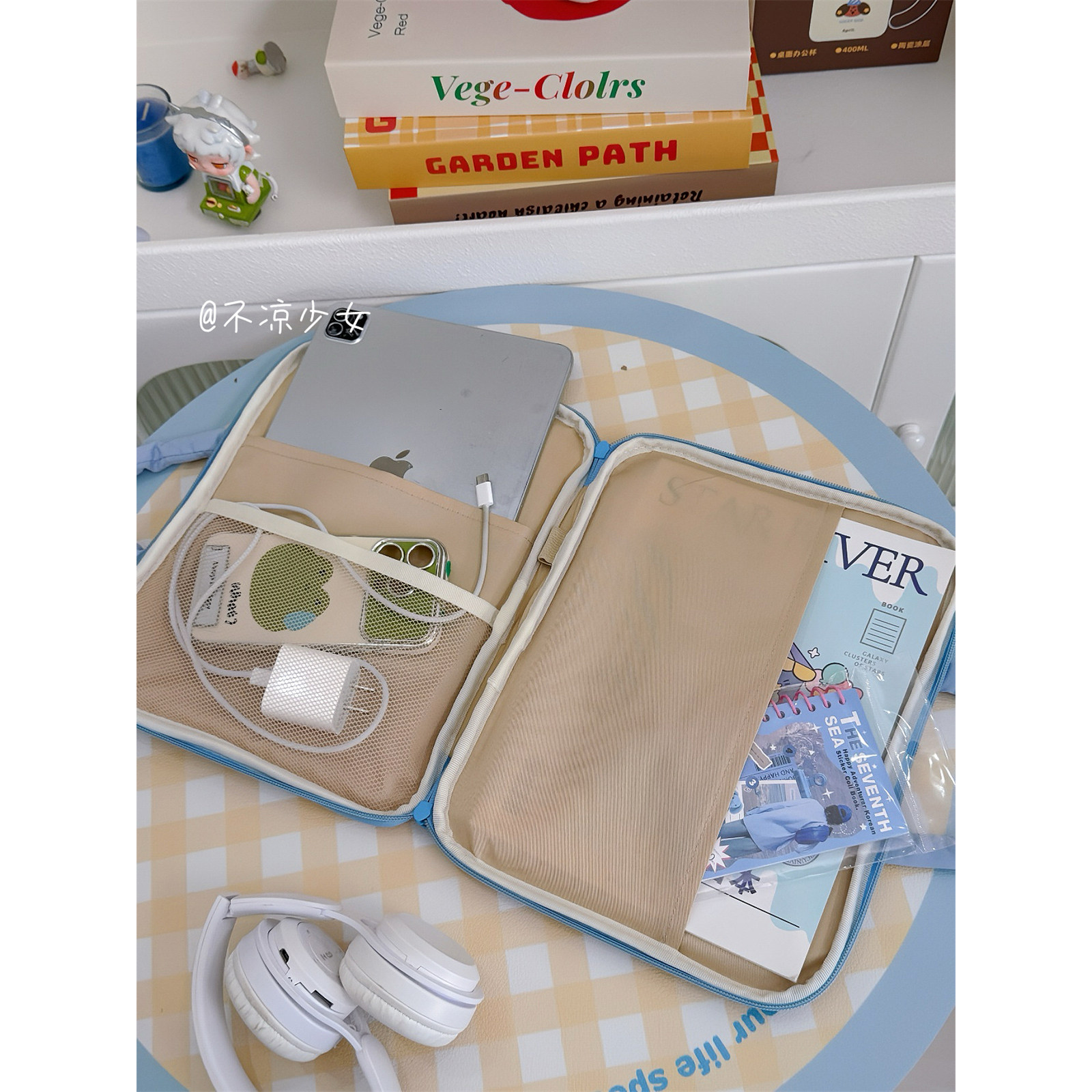 可爱格子卡通11寸iPadpro平板内胆包14寸笔记本保护套电脑收纳包