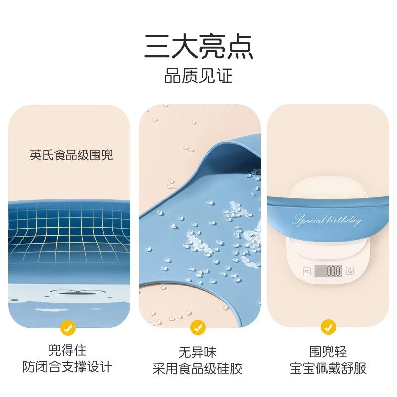 英氏宝宝吃饭围兜婴儿硅胶围嘴超软儿童用3D喂食饭兜防水耐脏神器