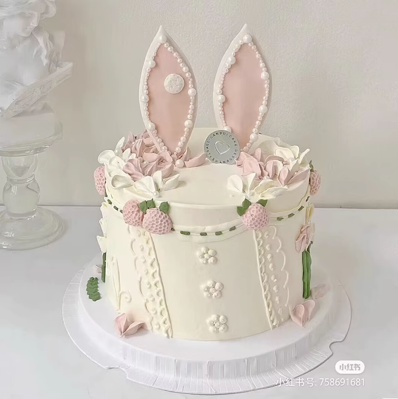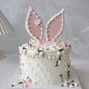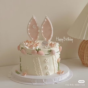 网红大南瓜同款 饰插件复古小兔宝宝生日摆件 珍珠兔耳朵唯美蛋糕装