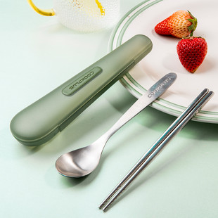 抗菌316L不锈钢勺子筷子叉子学生单人餐具套装 旅行上班便捷餐具盒