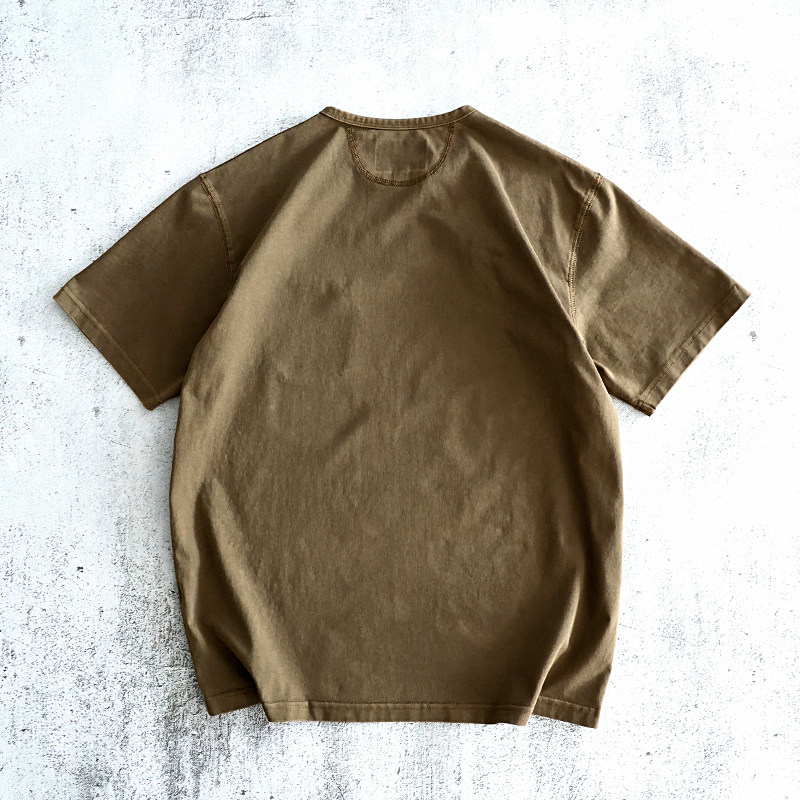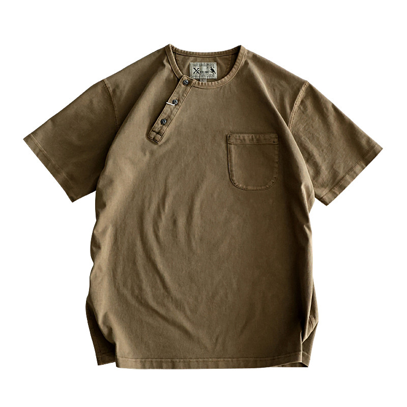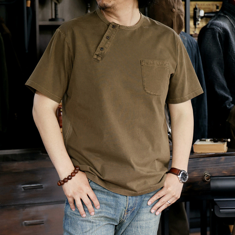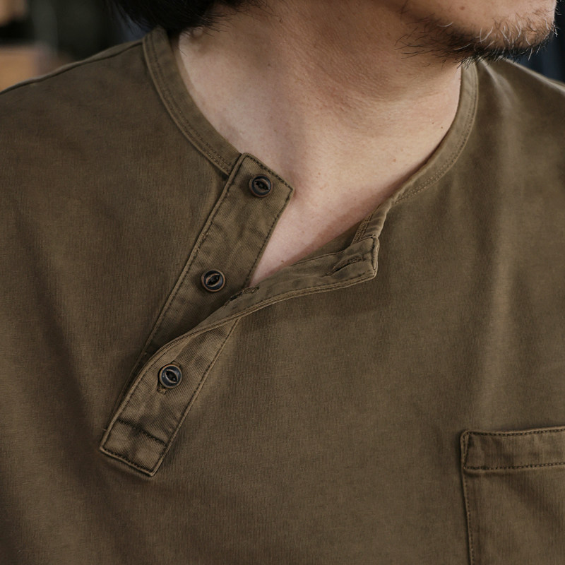 非rrl T恤全棉原创设计偏领休闲新品 西里布夏季 复古驼色亨利领短袖