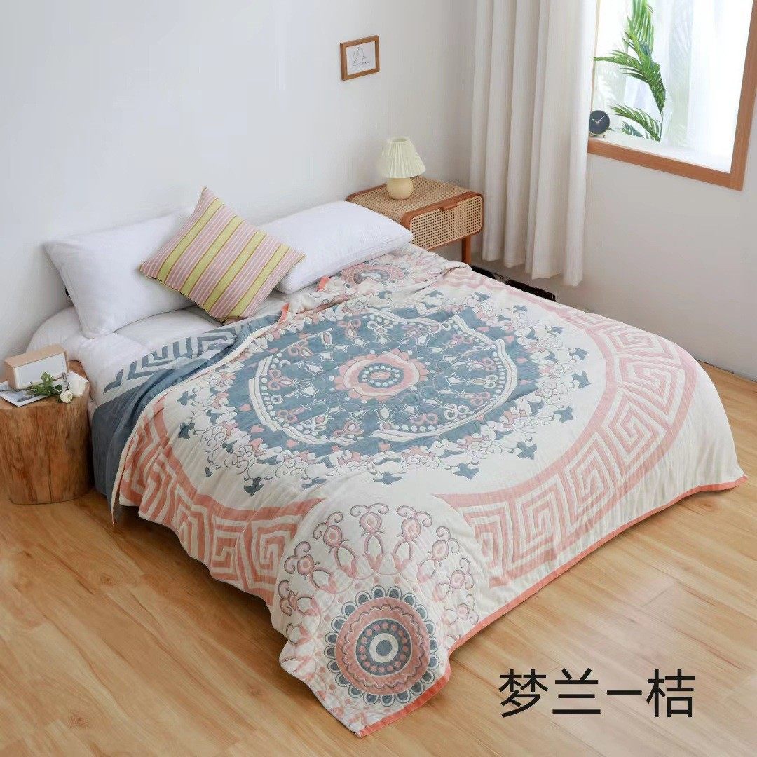 简约纱布加厚全棉毛巾被单双人午睡现代沙发毯柔软卡通空调毯夏凉