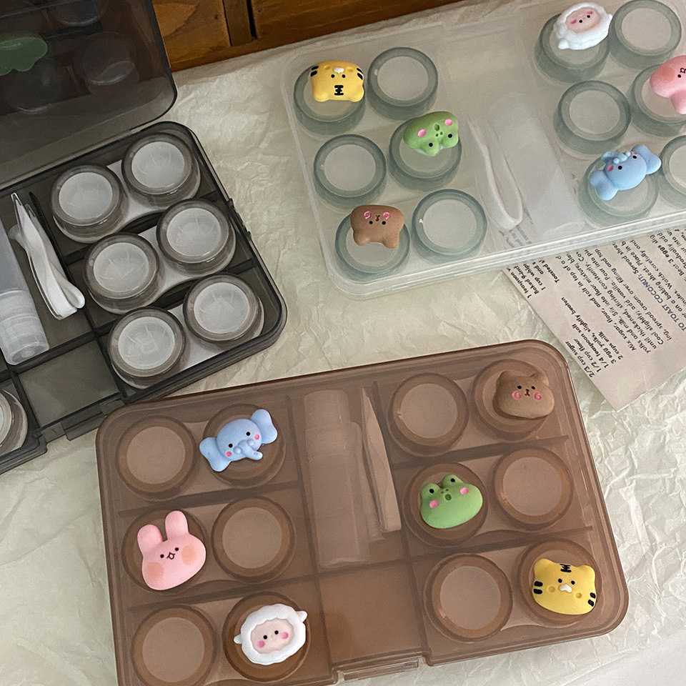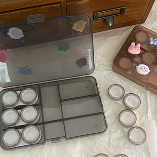 卡通六联美瞳盒多副装 收纳盒简约少女家用宿舍大容量便携透明盒子