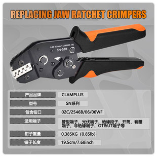 SN系列7.5寸压线钳替换钳口套装 冷压端子插簧插片模块 组合棘轮式