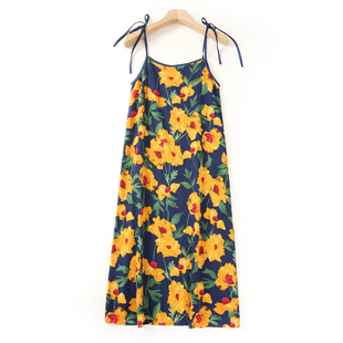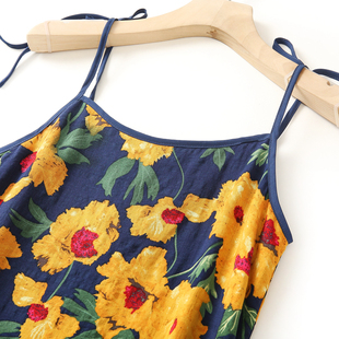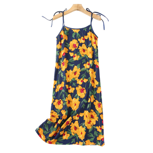 法式 高级感蓝色醋酸缎面吊带连衣裙性感飘带腰部蕾丝镂空包臀长裙