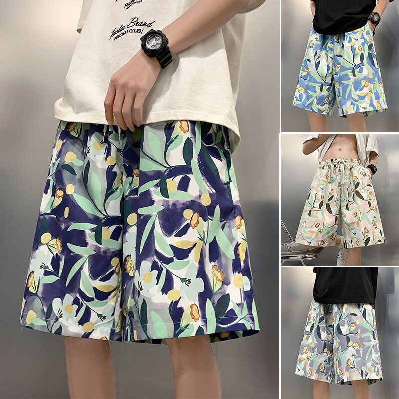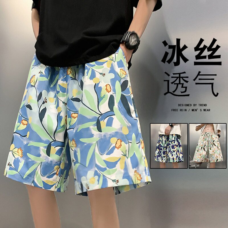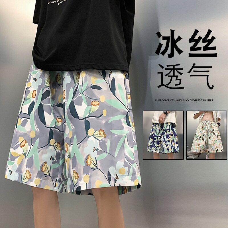 休闲大裤 潮流沙滩裤 冰丝速干可下水五分宽松花短裤 薄款 衩5 男夏季