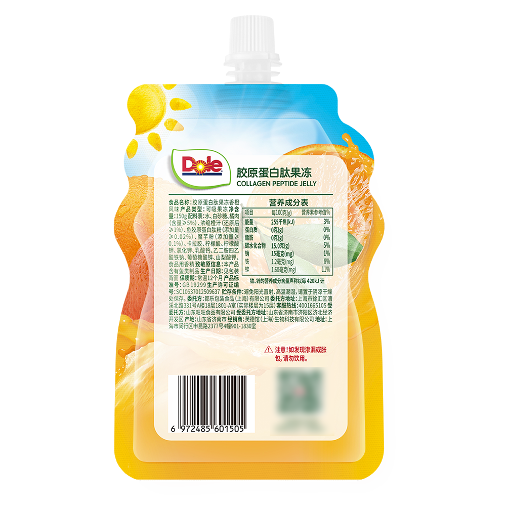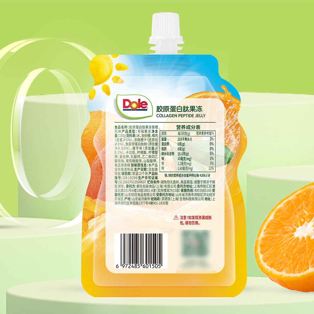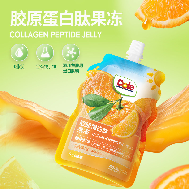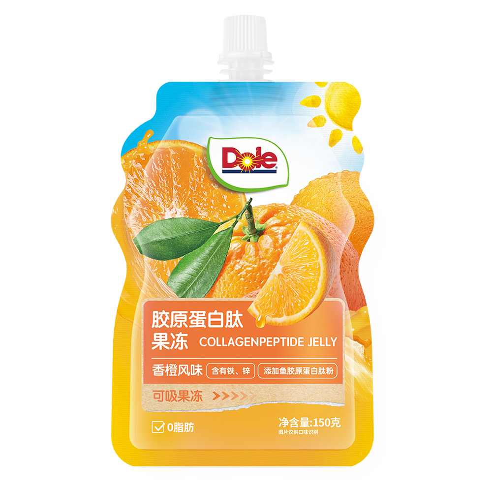dole都乐胶原蛋白肽果冻香橙风味150g 8袋可吸果冻休闲网红零食