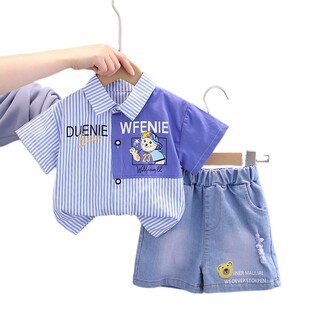 短袖 衬衣两件套婴儿童装 套装 小童洋气宝宝夏季 潮 2026新款 男童衬衫