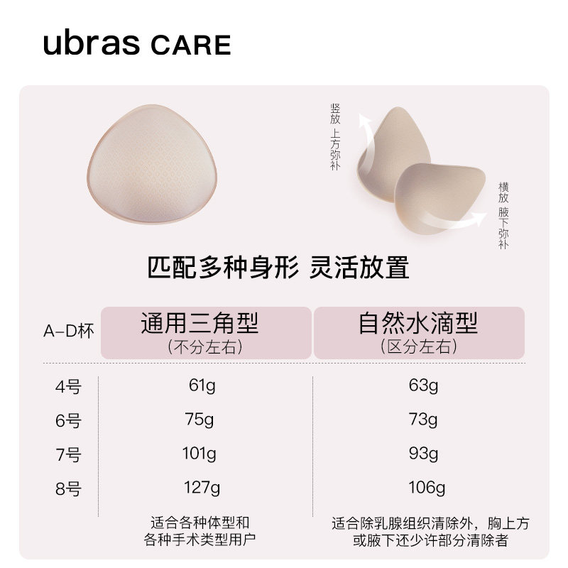 ubras CARE益彼乳腺术后专用轻质颗粒义乳透气假胸文胸垫片夏季