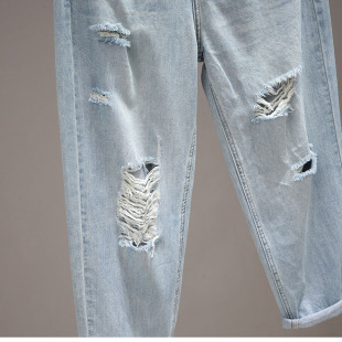 萝卜哈伦裤 高腰宽松浅蓝休闲显瘦老爹裤 女春夏2026新款 破洞牛仔裤