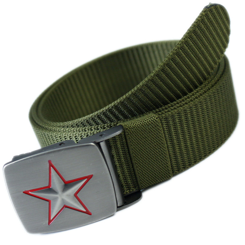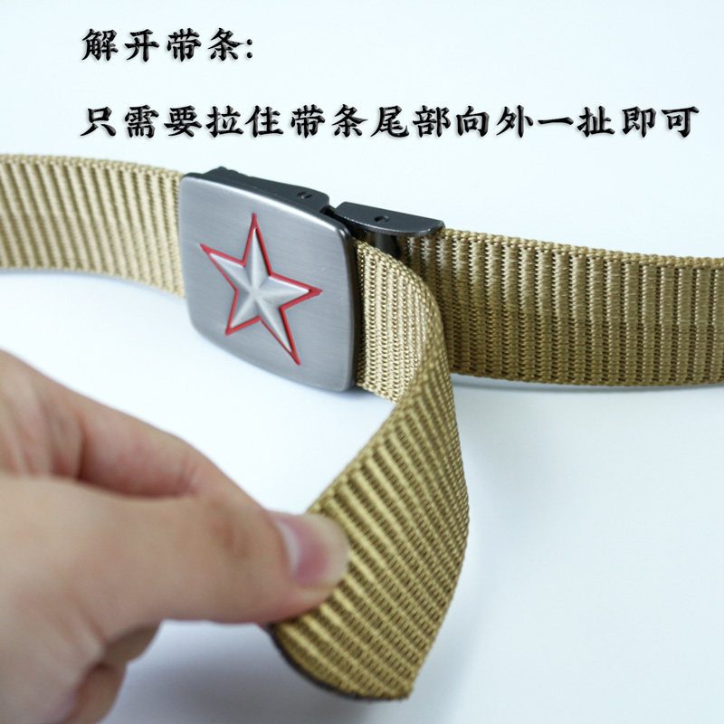 带新款 五星皮带头裤 牛仔裤 平滑扣压扣皮带工装 尼龙帆布腰带 带男款