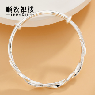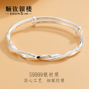 顺钦银楼S9999纯银手镯女莫比乌斯环足银镯高级感设计生日礼物