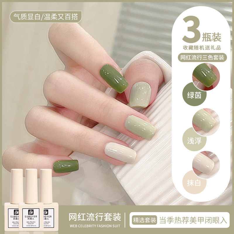 牛油果绿指甲油胶2025年新款 美甲店专用高档持久 流行显白绿色套装