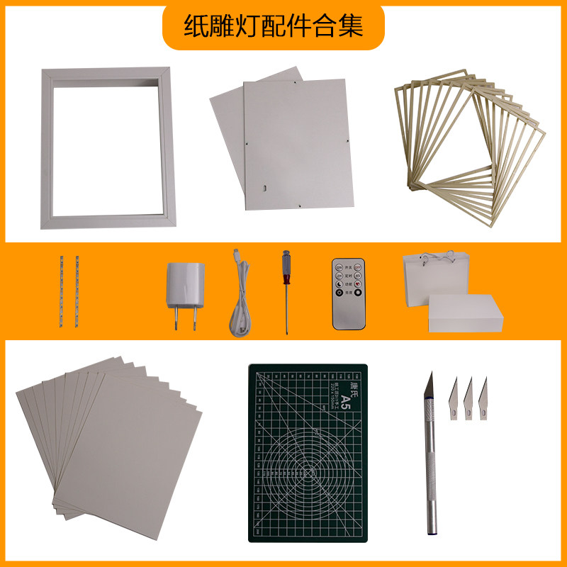 光影纸雕灯剪影灯DIY材料包木框空白图纸A4木框夜灯立体手工纸刻