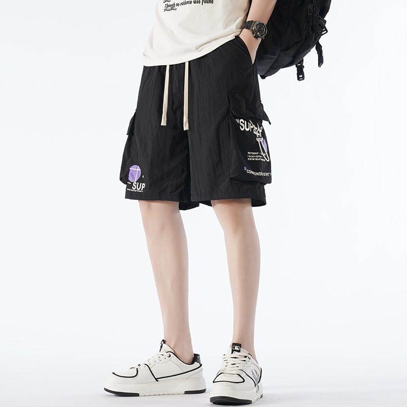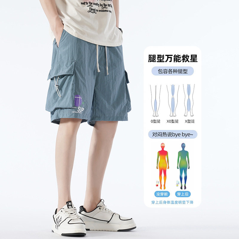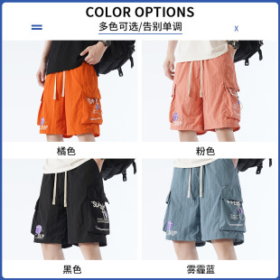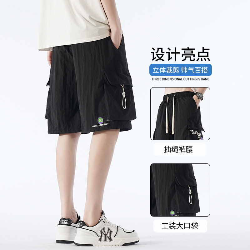 新款 潮牌印花工装 五分裤 夏季 宽松潮流直筒中裤 男士 子薄款 冰丝短裤