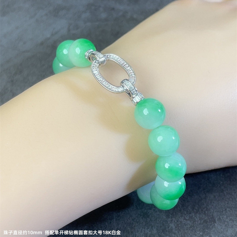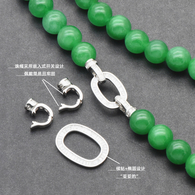 18K金珠链扣梯钻椭圆豪华翡翠项链连接扣珍珠手链配件小米珠手串