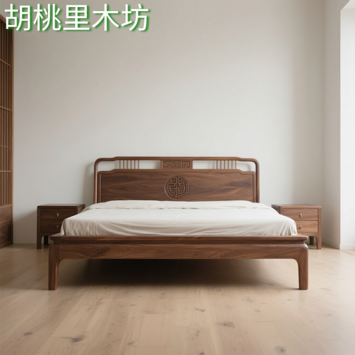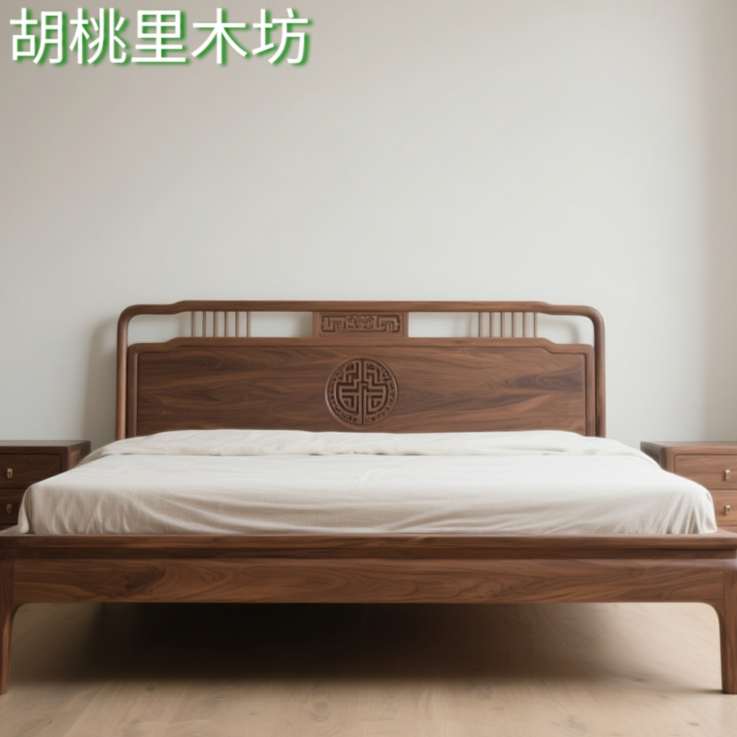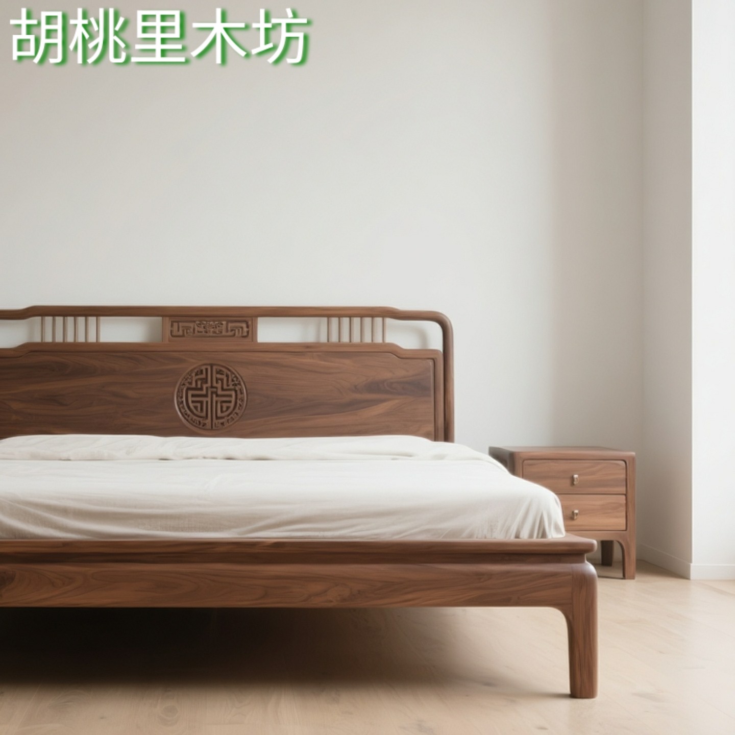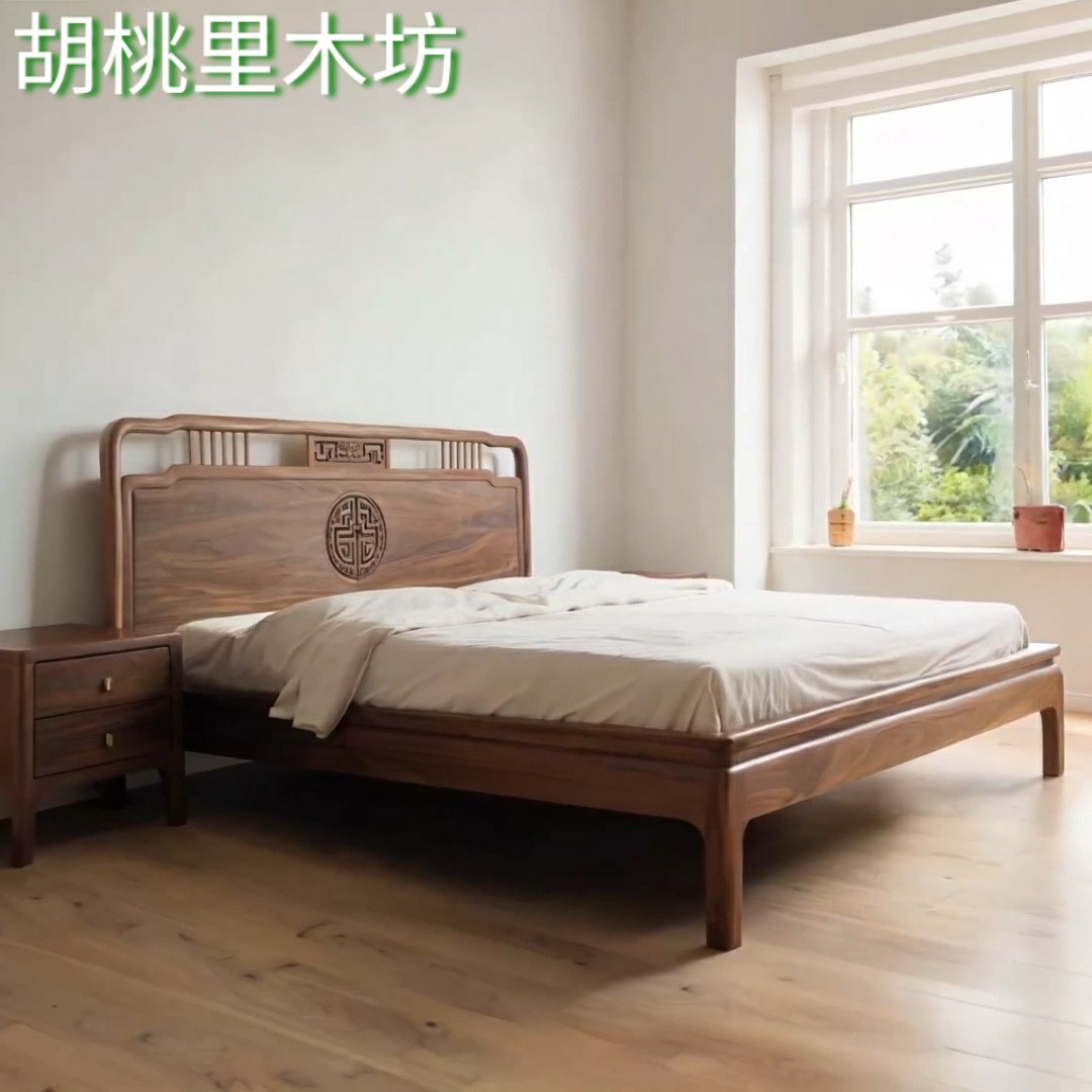 实木床现代简约胡桃木主卧1.5米双人床1.8米主卧轻奢婚房双人床