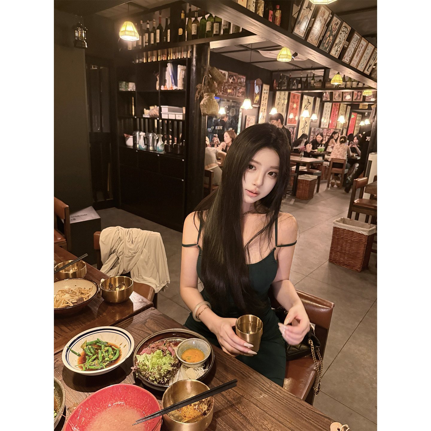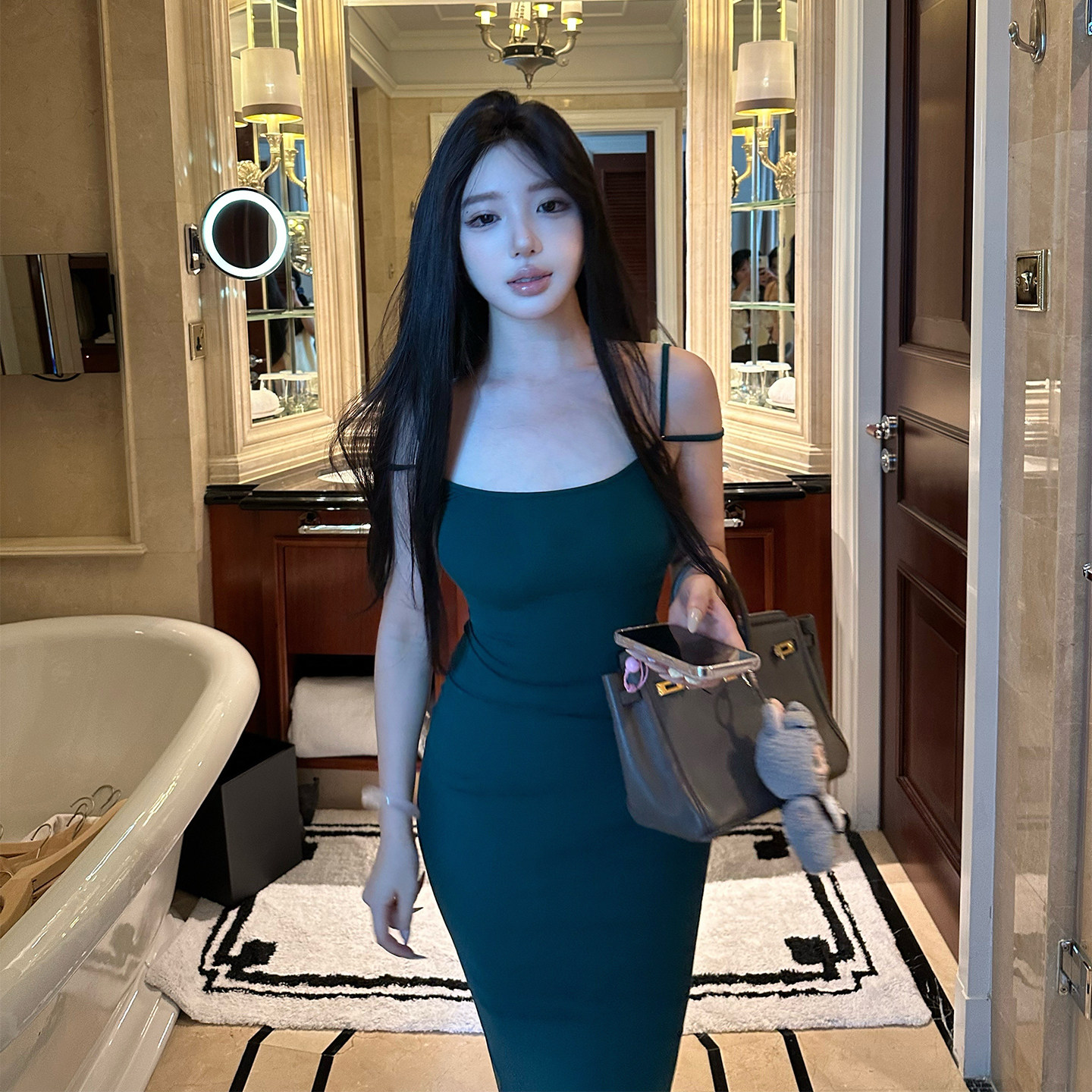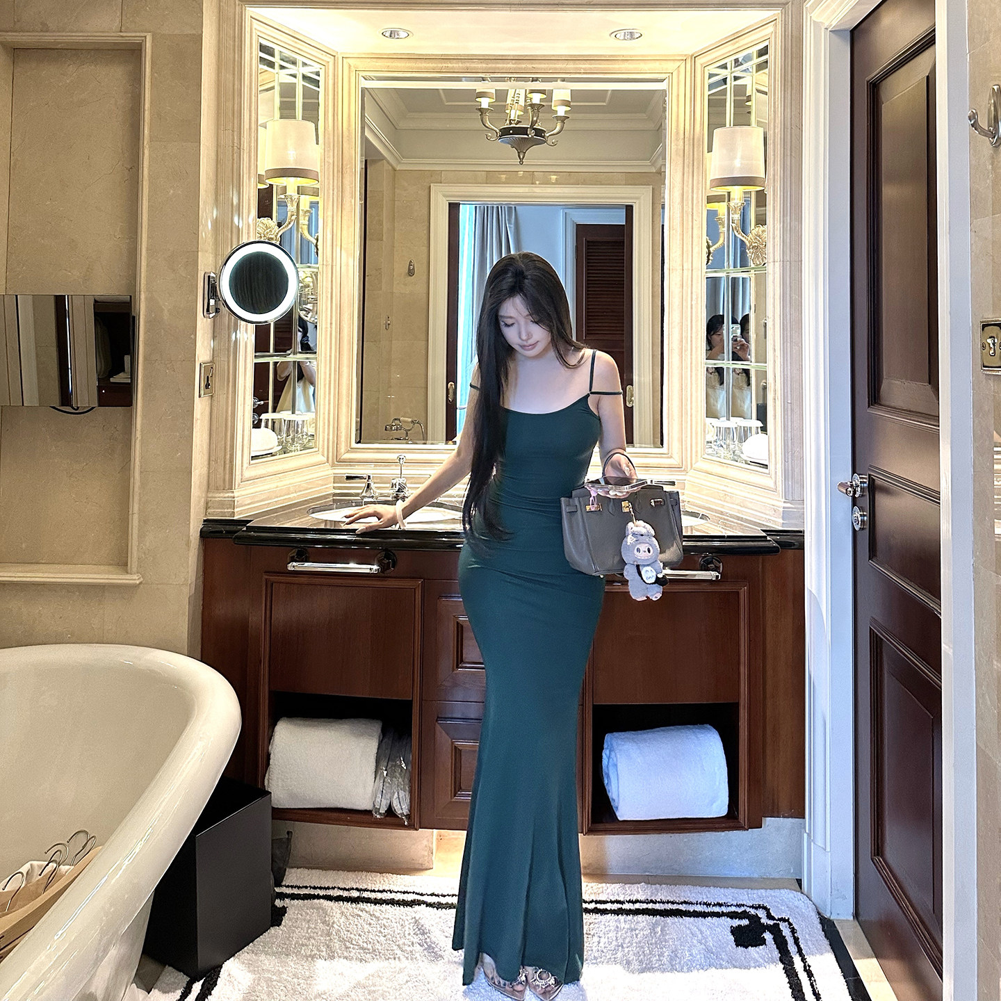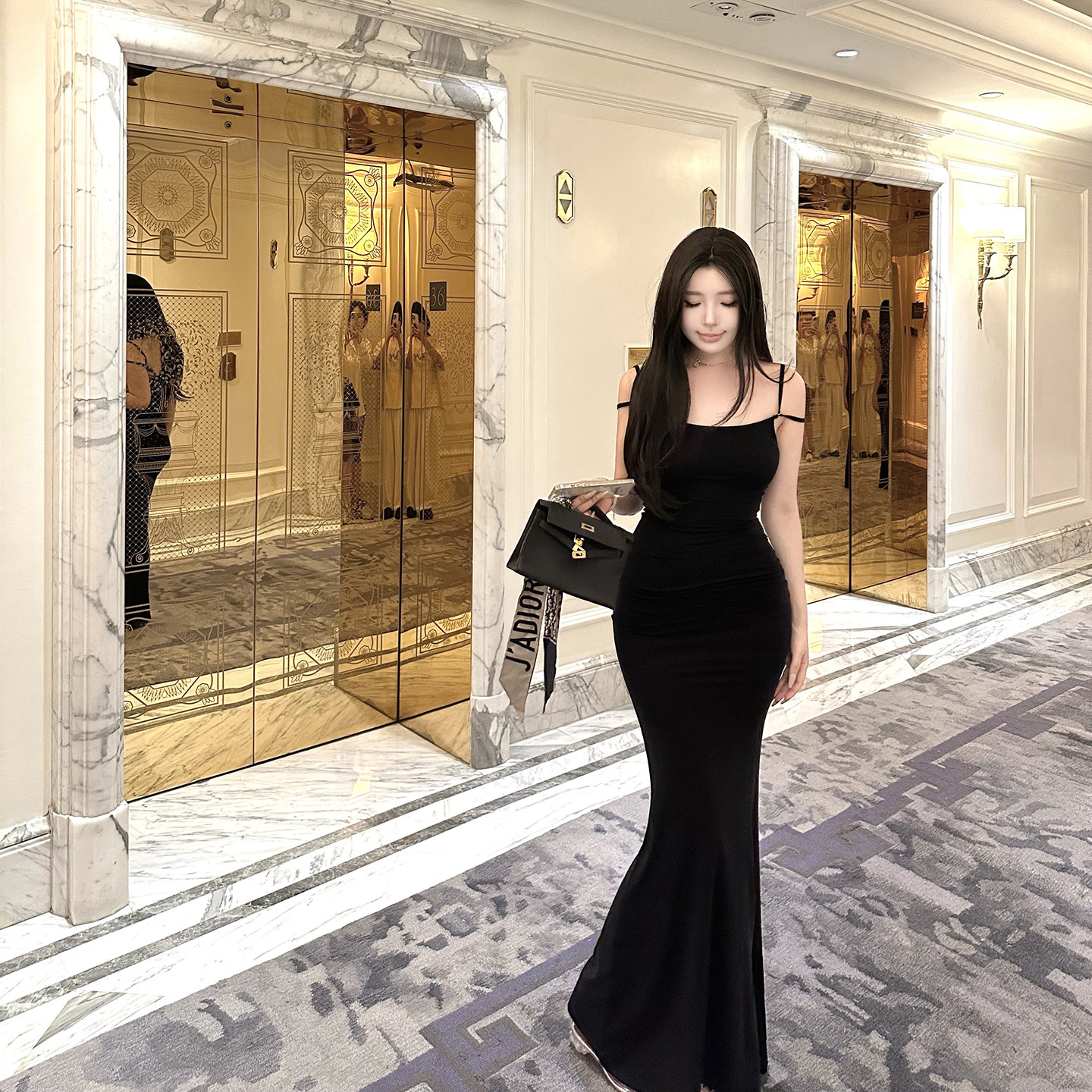 天丝双肩带连衣裙修身 CHANGE MISS 显瘦鱼尾长裙 香颂夜巴黎