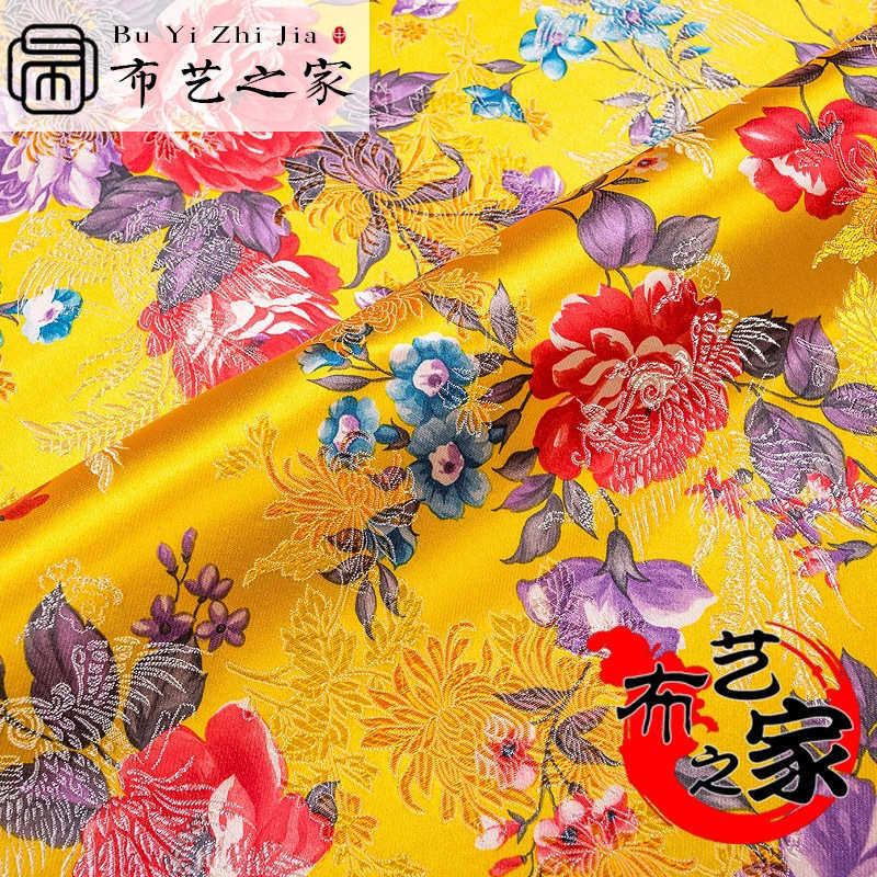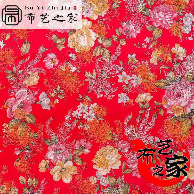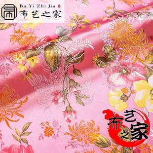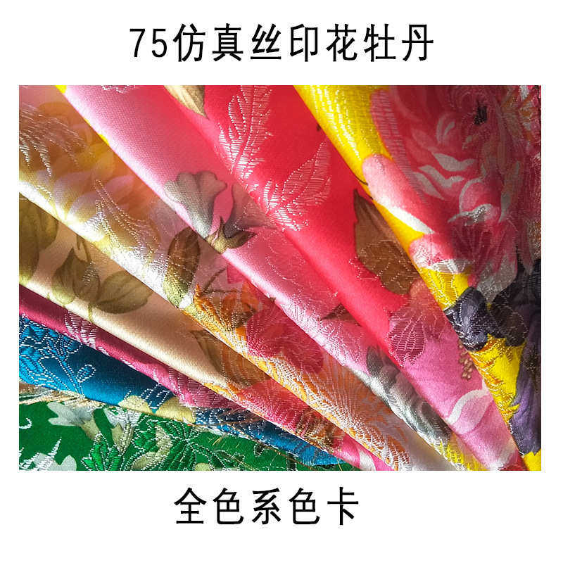 印花牡丹仿真丝织锦缎面料礼服仿古旗袍唐装 布 绸缎布料工艺品包装