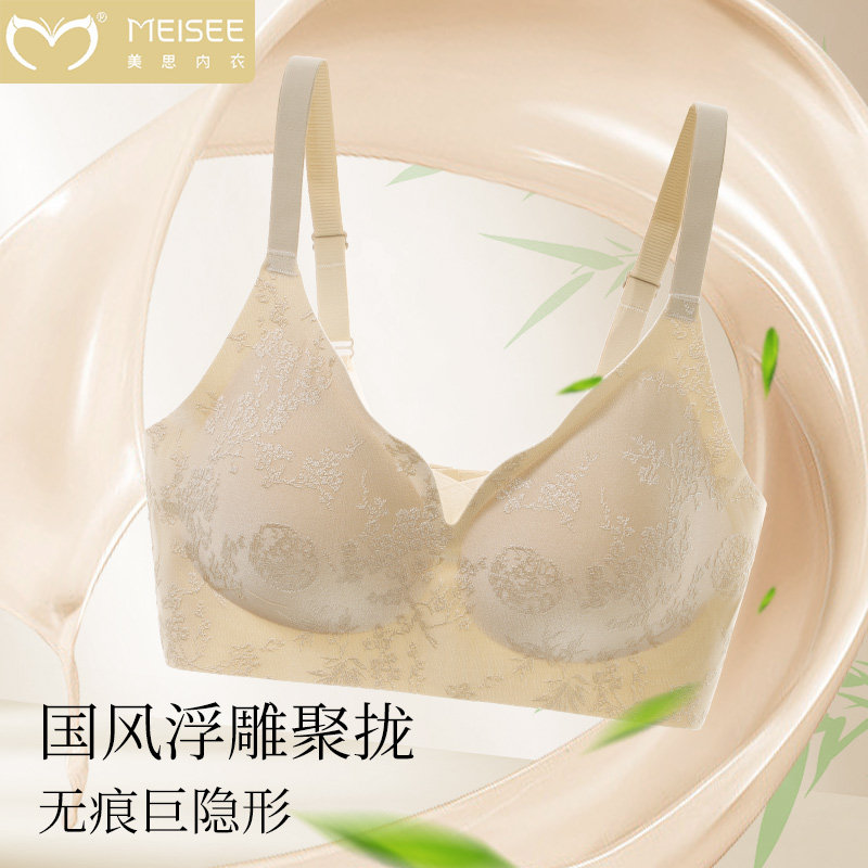 内衣女小胸聚拢收副乳防下垂无钢圈文胸罩 新中式 美思 国风浮雕