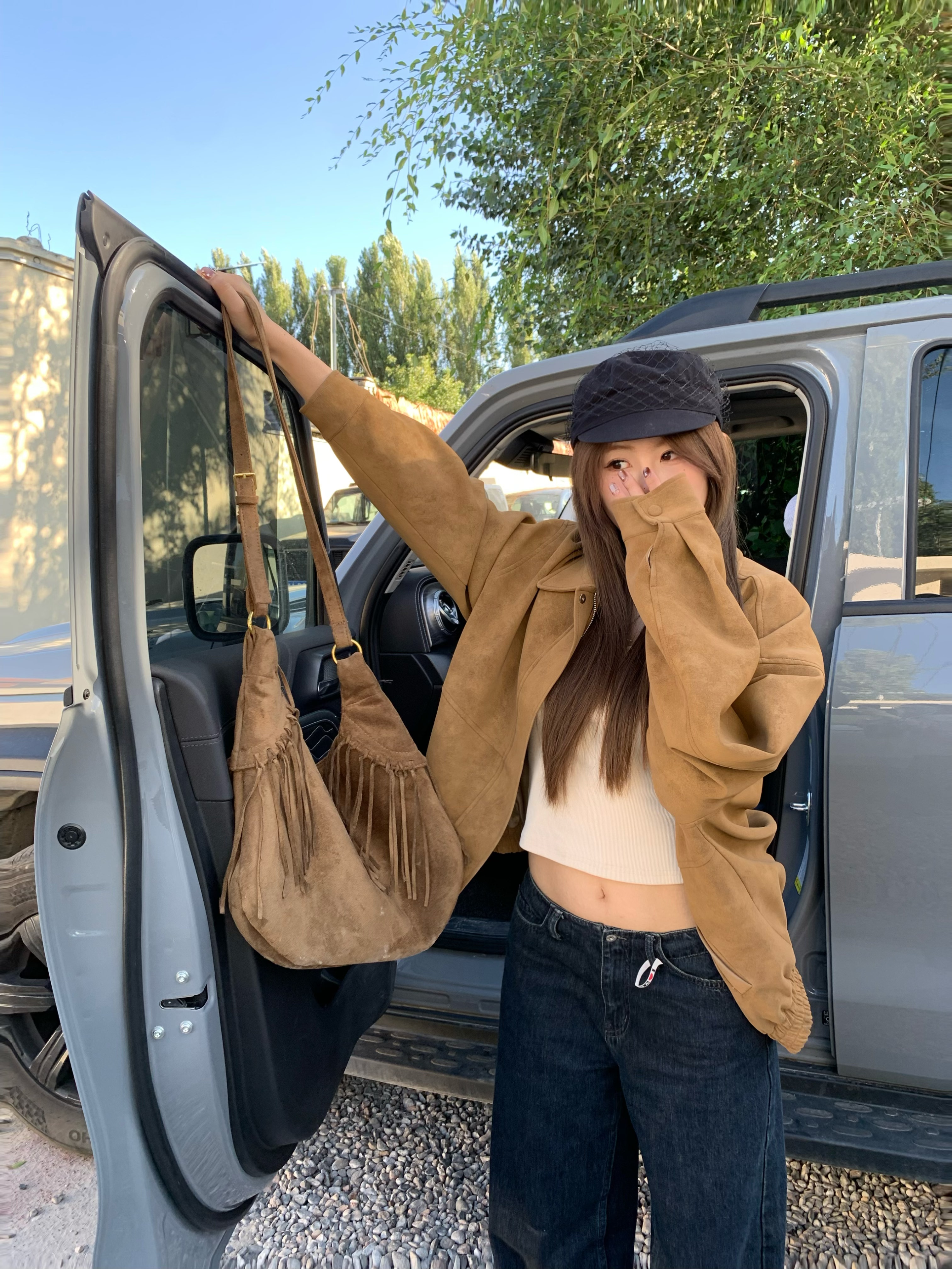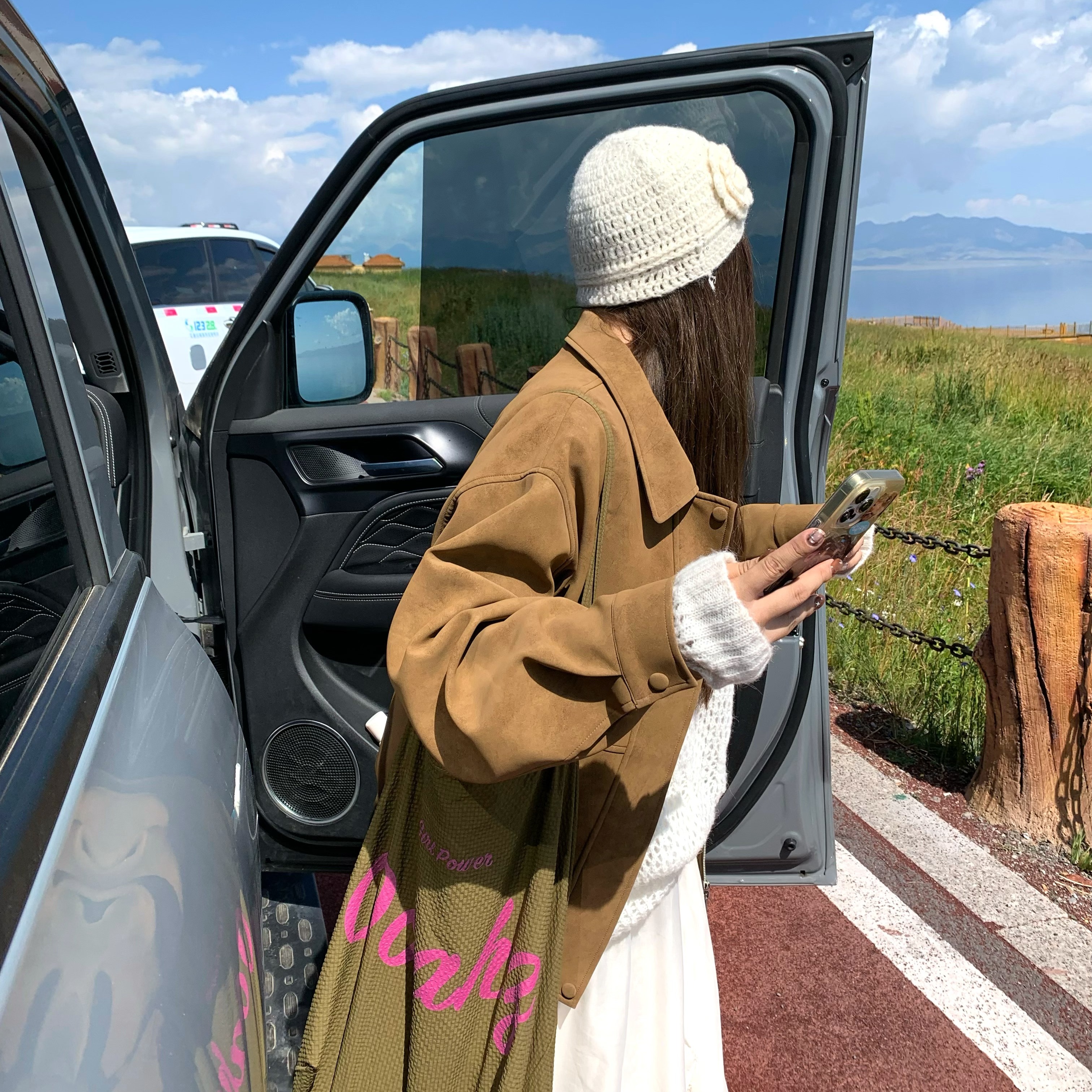 宅宅athome 复古仿麂皮外套翻领宽松休闲上衣夹克 藤姐同款