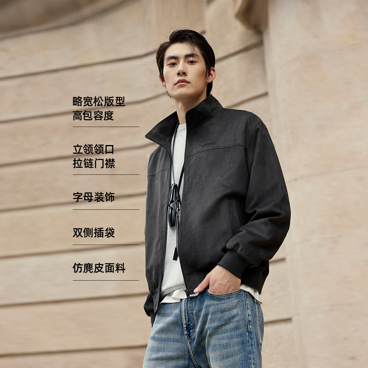 口底摆拉链门襟长袖 夹克日常百搭立领松紧袖 上衣 春季 杰克琼斯男装