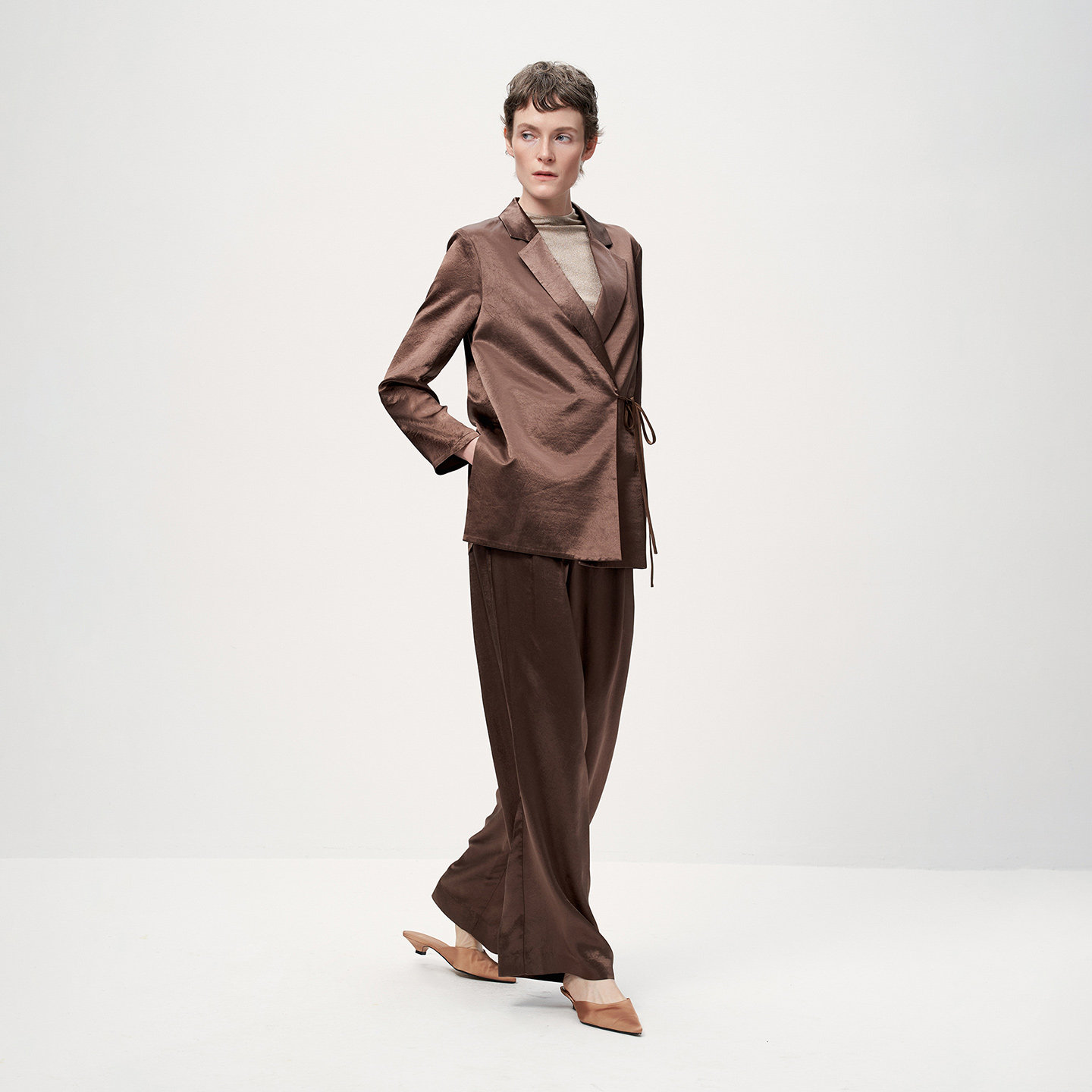 外套 简约高级静奢通勤缎面肌理西装 BLUE轻奢优雅女装