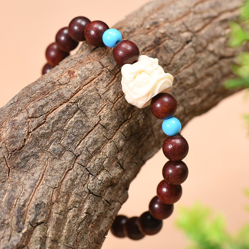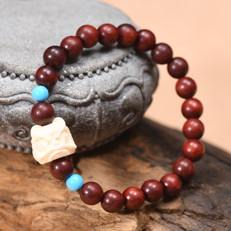 赞比亚小叶紫檀醒狮手串DIY复古文创男女款 国风木制佛珠手链批发