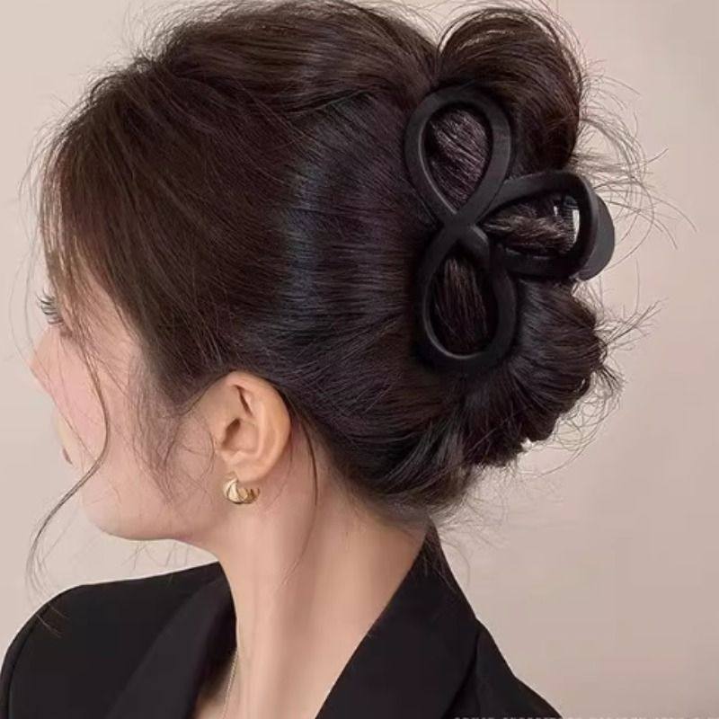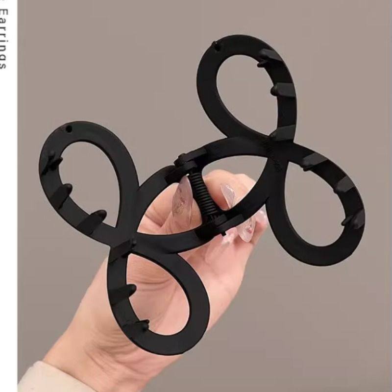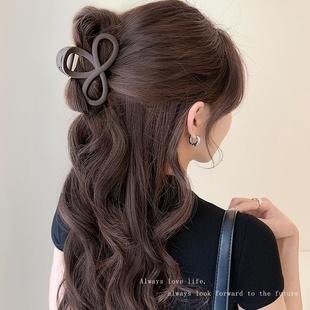 低丸子头黑色缎面蝴蝶结发夹女夏后脑勺弹簧夹后脑勺马尾夹子头饰