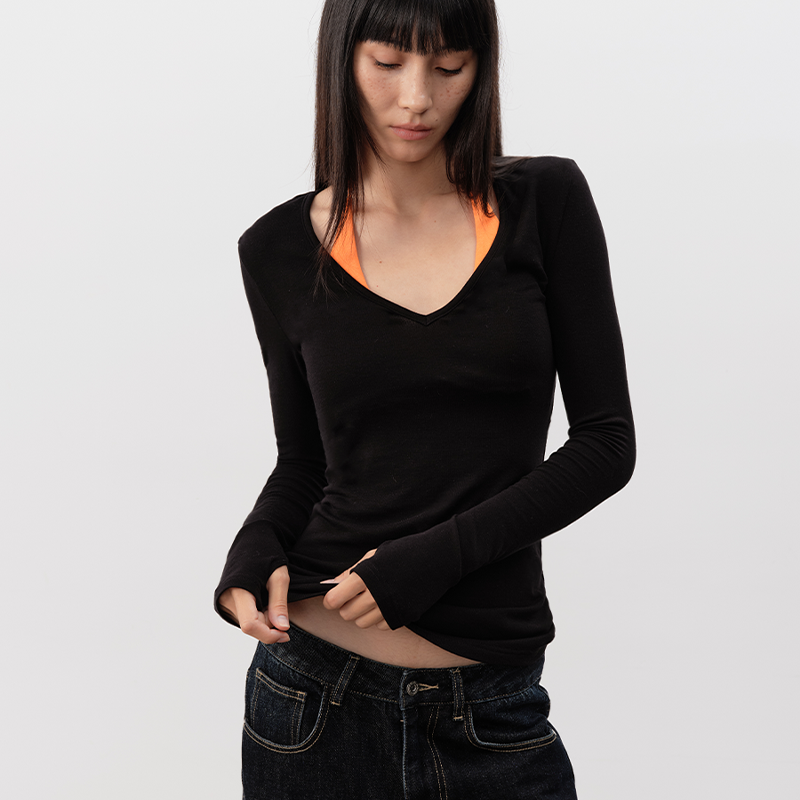 舒适百搭打底衫 新款 t恤男女保暖上衣秋冬季 拇指白小T加绒加厚长袖